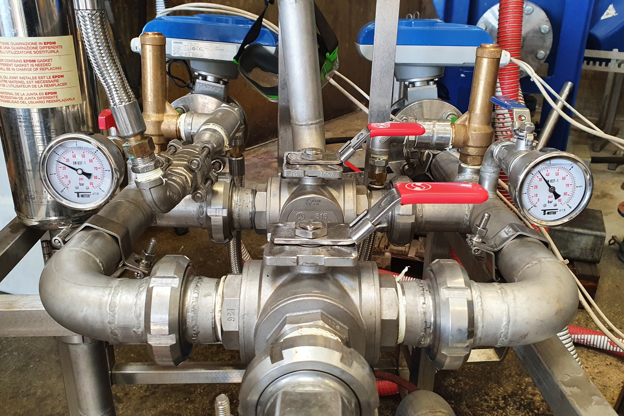 Notre machine mesure le débit et la pression à l’intérieur du circuit et nous permet de calculer la perte de charge. Ainsi, nous pouvons effectuer le désembouage nécessaire et rendre à l’échangeur ses performances initiales. Elle fonctionne de manière mécanique, par injection de bulles d’air de grosse taille avec pression maximum de 3 bars dans le réseau dans le réseau, ce qui provoque des zones d’aspiration et des mini-coups de bélier pour décoller les boues